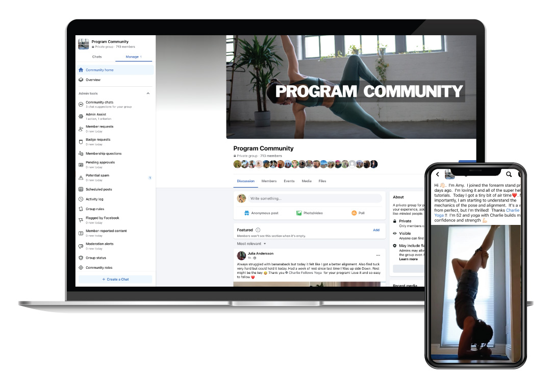 Get support, share progress, and stay accountable with a group of likeminded yogis who are walking the same path as you.