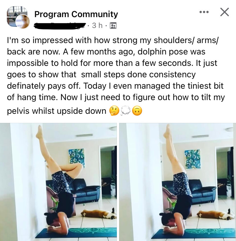 You’ll get a complete training plan for each inversion: Headstand, Forearm Stand, and Handstand.